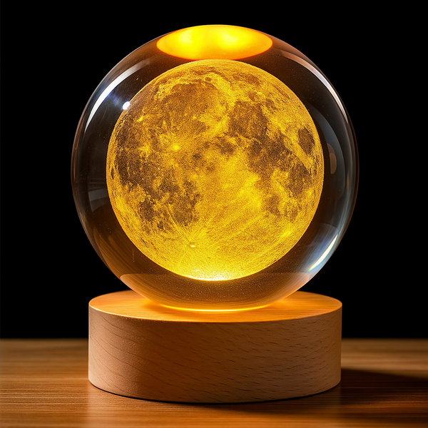 🌕 3D Laser Engraved Moon Design – Realistic moon surface carved into a crystal-clear glass sphere 💡 Warm LED Light – Gentle glow perfect for night lighting, ambiance, or relaxing environments 🌳 Premium Wooden Base...